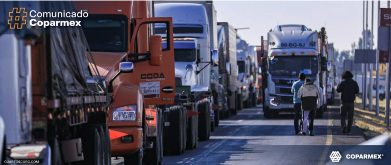 Coparmex exige respuestas inmediatas ante bloqueos de transportistas y campesinos y la violencia que existe en rutas estratégicas.