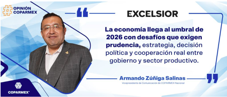 Artículo de Opinión escrito por: Armando Zúñiga Salinas | Vicepresidente de Comunicación de Coparmex Nacional | Vía: @Excelsior X: @Armando_ZunigaS México cierra 2025 en un entorno económico que confirma muchas de las advertencias que hemos venido planteando […]