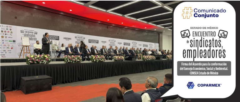 Acuerdo histórico de empresarios y trabajadores para mejorar condiciones de vida con la creación del Consejo Estatal, Social, Económico y Ambiental en el Edomex.