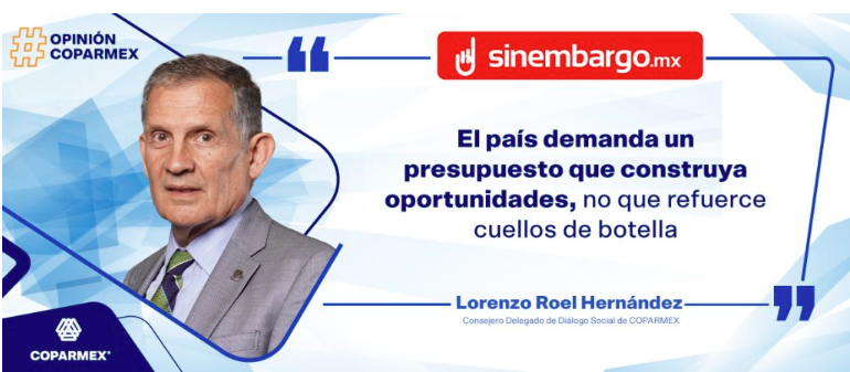 Artículo escrito por Lorenzo Roel Herández, Consejero Delegado de Diálogo Social de COPARMEX | Vía: @SinEmbargoMX X: @LorenzoRoel1 El Presupuesto de Egresos 2026 se presenta como una hoja de ruta clave para el desarrollo […]