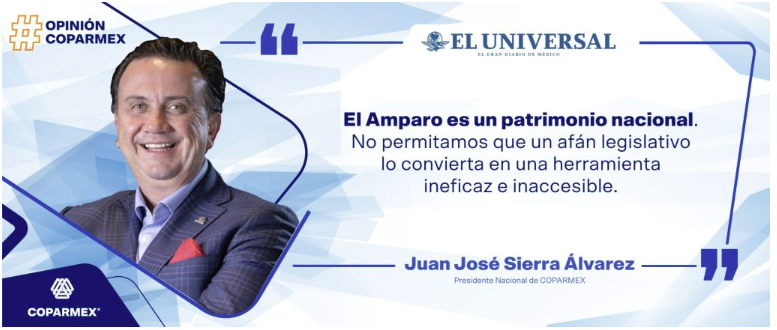 Artículo de Opinión escrito por Juan José Sierra Álvarez, Presidente Nacional de COPARMEX | Vía:@El_Universal_Mx X:@jsierraalvarez Cuando hablamos del juicio de amparo, no estamos discutiendo un simple trámite legal o una herramienta de litigio para grandes corporaciones. Estamos hablando, ni más […]