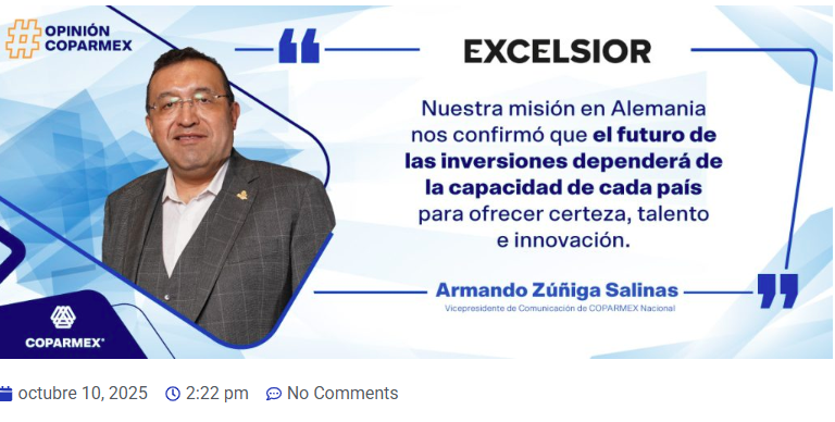 Artículo de Opinión escrito por Juan José Sierra Álvarez , Presidente Nacional de COPARMEX | Vía: @elsolde_mexico X:@jsierraalvarez Hace apenas unos días, una delegación de COPARMEX regresó de una intensa y fructífera misión de estudio en Alemania. Esta visita no fue […]