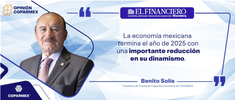 Artículo de Opinión escrito por Benito Solís , Presidente del Comité de Propuesta Económica de COPARMEX | Vía: @ElFinanciero_MX La economía mexicana termina el año de 2025 con una importante reducción en su dinamismo y, cuando se […]
